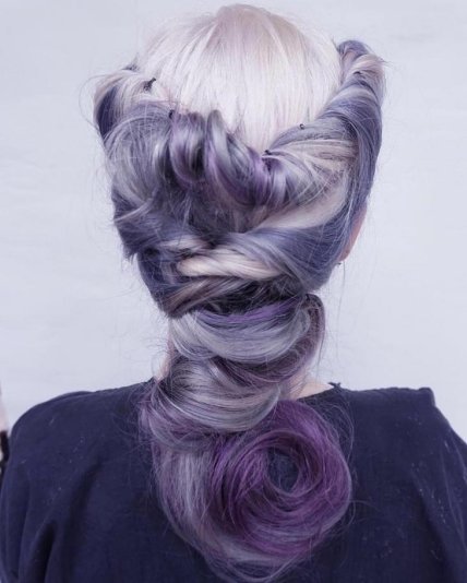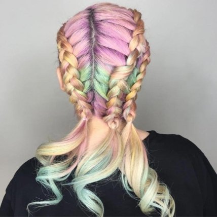 Заплетите три косы методом обратного плетения, кончики оставьте свободными. Круто смотрится на волосах, окрашенных в разные цвета!
