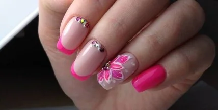 Цветы, крупные листья, веточки и даже целые композиции часто украшают ноготки модниц. В летнем сезоне тенденция все также актуальна. Тем более, что французский маникюр - прекрасная основа для такого дизайна.