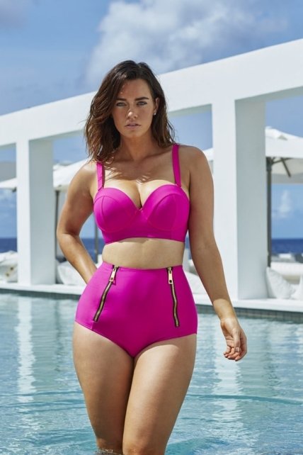 Для полных женщин 40 лет все также популярными остаются модели раздельных купальников с высокими плавками. В этом случае одним махом удается красиво утянуть бока, скорректировать живот или жировые отложения на пояснице. Особенно интересно будут смотреться высокие плавки с декоративным поясом по верху. Если его ещё украсить параллельно расположенными кольцами – вы в выигрыше.