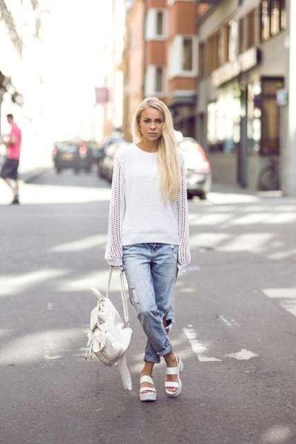 Еще одна модная фишка, касающаяся обуви, заключается в рекомендации выбора светлых моделей. Такая небольшая деталь и вправду способна вывести любой образ на новый стильный уровень.