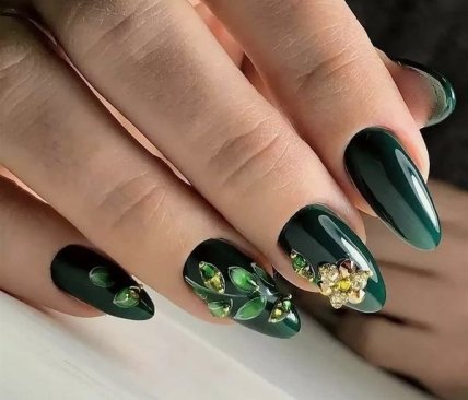 Такое решение не утяжелит и не испортит общий образ модницы. Дополнить и завершить модный дизайн маникюра с золотыми цветами поможет дополнительный декор. Глиттер, кристаллы, стразы, втирка, фольга или пайетки – все это разнообразит и украсит непревзойденный нейл-арт.