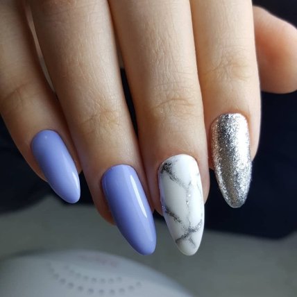 Зачастую мраморный дизайн выбирают в холодное время года. Но в этом сезоне предлагаем попробовать что-то новое. В данном случае это имитация мрамора в сочетании с яркими оттенками.