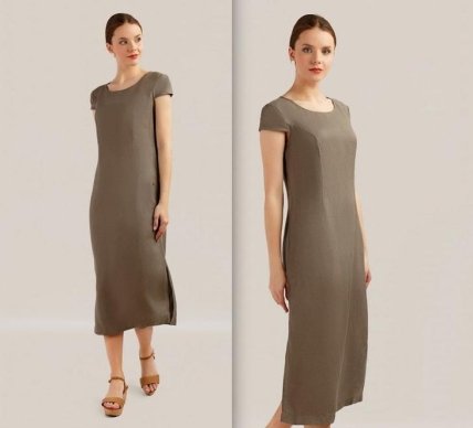 Платье прямого кроя, похожее на длинную футболку. Главное, чтобы сделано оно было из ниспадающей ткани, а не из тонкого трикотажа. В этом случае оно не будет облегать фигуру, предательски подчеркивая все неровности, а будет деликатно ниспадать "рядом". За счет кроя его смело можно носить с кроссовками или каблуками, короткой курткой или объемным джемпером, создавая довольно молодежный образ, в котором длина миди не делает вас старше.