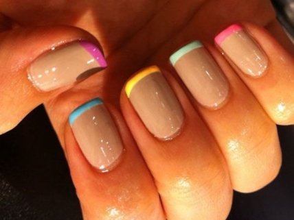На коротких ноготках данный дизайн выглядит очень нежно, спокойно и ненавязчиво. Для того чтоб придать дизайну коротких ноготков разнообразие и яркость, используйте стразы или яркие блестки. Такой маникюр в летний период однозначно не останется без внимания окружающих.