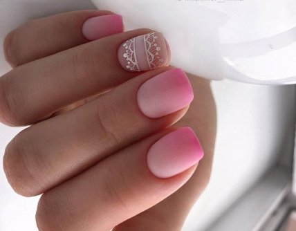 Такой дизайн очень часто применяют невесты для непревзойденного свадебного маникюра. А в качестве дополнения используют стразы или блестки.