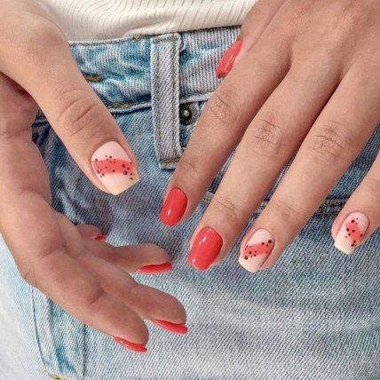 Самыми распространенными фруктами в летний сезон 2020 года станут киви, бананы, арбуз или апельсин. Безусловно, для такого нейл-арта необходимо использовать только самые яркие и сочные лаковые тона.