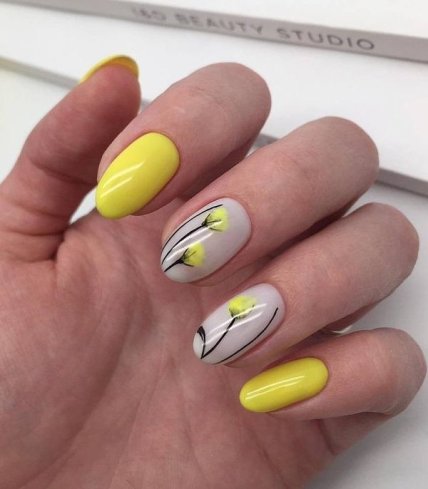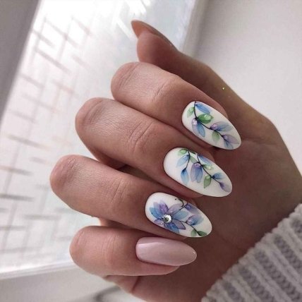 Бутоны, тонкие веточки с листиками — прекрасное решение в данном случае. Такой маникюр уместен на работе, в повседневной жизни и прекрасно подходит для создания вечерних образов.