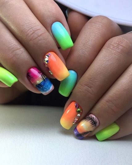 Независимо от формы и длины ногтей, летом появляется больше разнообразных вариантов их оформления. Тематический дизайн этого сезона в основном заключается в отдыхе и полном релаксе.