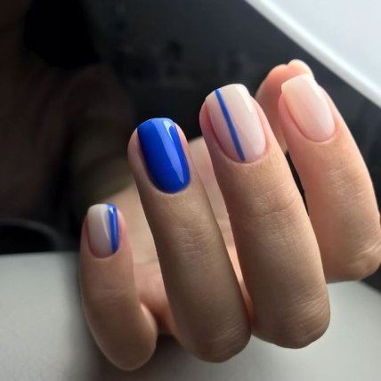 Но чтобы маникюр был гармоничным, дизайн все же лучше использовать на нескольких ногтях. В основном его украшают блестками или скотч-лентой. Впрочем сейчас также актуально оформление паутинкой, которая придает геометрии мягкости. Отлично смотрится сочетание с негативным пространством или даже с цветочным рисунком.