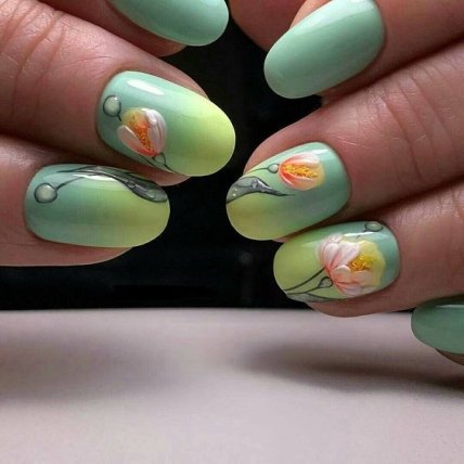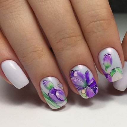 Как весной, так и летом одним из наиболее актуальных видов дизайна считается цветочный рисунок. В тренде 2020 года не только маленькие бутоны и веточки, но и крупные, объемные цветы. Каждый из них создает совершенно разный эффект на ноготках. Тем более, многое зависит от основного покрытия. При желании всегда можно добавить небольшое количество страз или блесток, чтобы подчеркнуть красоту дизайна.