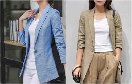 Если вы ищите идеальную ткань на лето, то лен станет именно тем вариантом, которому захочется воспевать оду каждый день, когда температура будет подниматься выше 30 градусов. Те девушки, которые один раз надели льняную вещь, уже никогда не откажутся от нее. Все еще не знакомы с этим материалом? Предлагаем начать с малого и приобрести лаконичный блейзер. Красоткам с типом фигуры «груша» лучше отдавать предпочтение удлиненным вариантам, прикрывающим бедра, а леди с пышным бюстом стилисты советуют покупать блейзеры, которые даже в застегнутом виде имеют глубокий вырез. Что касается девушек с небольшим размером груди, то их выручит одежда с объемным воротником. Когда полюбите лен всем сердцем, можете пополнить гардероб еще несколькими вещами, например, футболками, рубашками, бермудами.