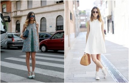 У этого фасона платья, созданного Кристианом Диором и Ив Сен Лораном, есть множество плюсов. Самый главный состоит в том, что наряд скрывает все недостатки фигуры, начиная от широких бедер, беков, и заканчивая полными ногами, невыраженной линией талии. Кроме того, платье А-силуэта придает образу элегантности, хрупкости и женственности, а также подходит абсолютно всем девушкам. В зависимости от личных предпочтений, вы можете выбрать одну из следующих модных моделей: короткую, длинную, кружевную, шифоновую, с объемными рукавами или без них. Самыми актуальными тонами считаются нежнейшие оттенки цвета неба. Однако, если вы не любите бледные тона, то можете смело себе позволить надеть яркий экземпляр. Также в моде долго будут платья в горошек, на пуговицах, свободного кроя, с цветочным принтом.