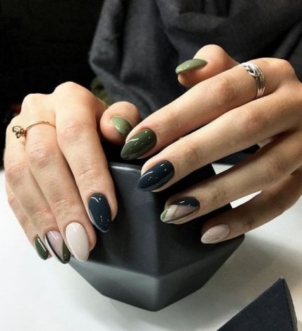 Сочетание двух-трех оттенков часто используют для градиентного маникюра. Речь идет не только о контрастных вариантах, но и из одной цветовой гаммы.