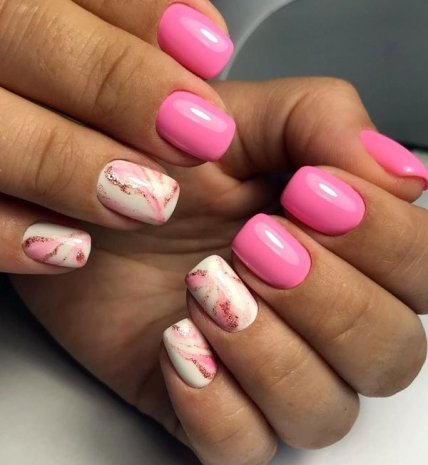 Современный маникюр в розовом цвете может смотреться совершенно по-разному.
