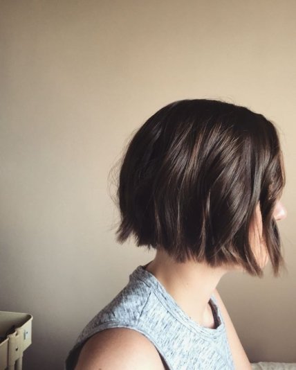 Боб каре без челки - еще один модный тренд, в котором совместились сразу две красивых стрижки. Спереди это каре, по бокам и сзади - боб! Длинные локоны возле лица мило обрамляют овал, а пышный объем затылка придает прическе легкость.