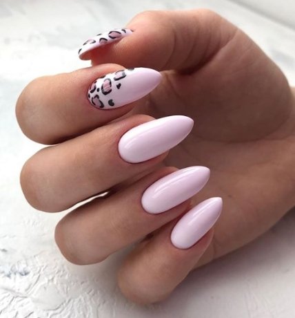 Также можно сделать леопардовый маникюр с помощью более светлых тонов лака, они придадут вашим пятнам больше деликатности, мягкости и нежности. Для этого используйте лаки более приглушенных тонов. Некоторые предпочитают в своем маникюре украшать камешками только один ноготь.