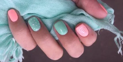 Как мы уже упоминали выше в статье, своё название бирюзовый цвет получил от полудрагоценного камня - бирюзы, поэтому оформление, имитирующее окрас природного минерала, стало просто шедевром нейл-дизайна. Подобный эффект можно создать при помощи кусочков фольги или рисунка.