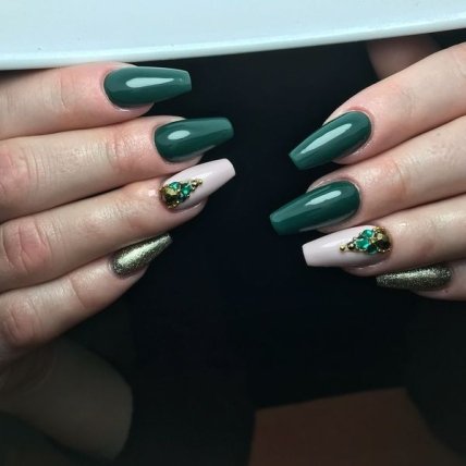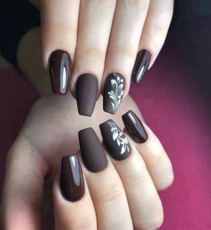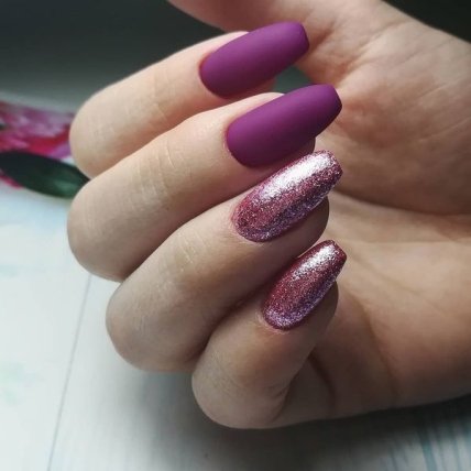 Не бойтесь экспериментировать с насыщенными и темными расцветками. Ногти должны сиять и выглядеть роскошно. Такой маникюр замечательно сочетается с матовым лаком.