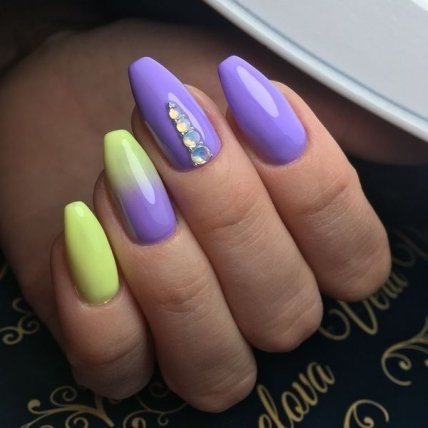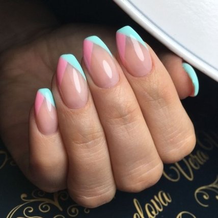 Такие ногти можно окрасить мерцающими голографическими цветами, использовать пастельные лаки или шикарные аппликации, чтобы получить очаровательный эффект.