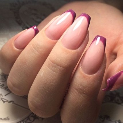 Ещё один вариант, ставший классикой — омбре или градиент, при котором цвет ногтя плавно меняется от лунки к кончику. У лунки, как правило, располагают более тёмный оттенок, на кончике — боле светлый.