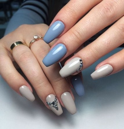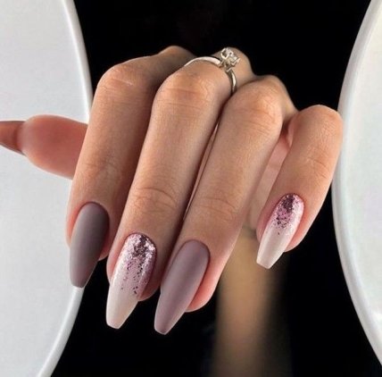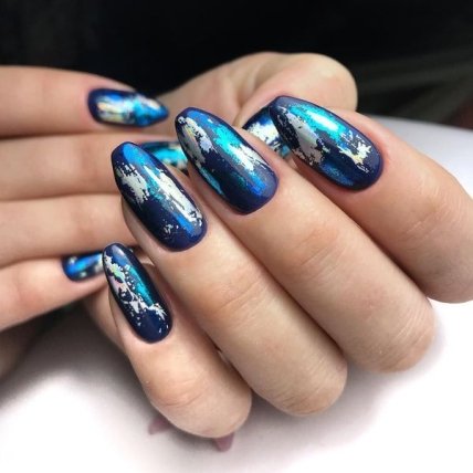 Не упустите возможность сочетать матовый и глянцевый эффект на руках, чтобы придать узору большую выразительность. Выбирайте эффект "русалки", мано, узоры из страз, блесток и фольги.