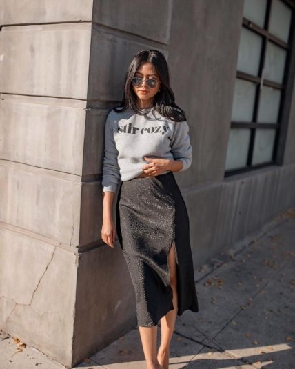 Черная юбка-карандаш идеально подойдет к любой ситуации: будь то соблюдение офисного стиля, дружеские посиделки в кафе, поход за продуктами в супермаркет. Мужчин всегда выручит черный пиджак, сочетаемый с любым верхом.