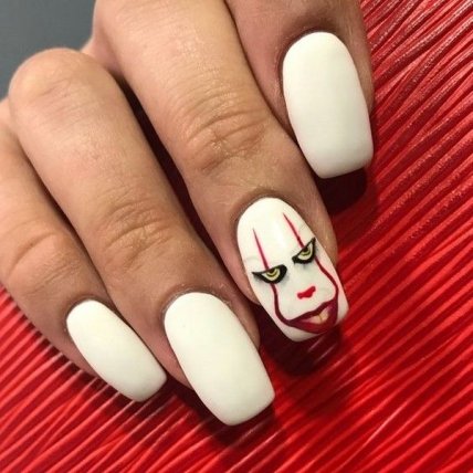 Тематика маникюра на Хэллоуин может быть очень разной, и в большей степени будет зависеть от ваших личных предпочтений. Это могут быть различные тыковки, летучие мышки, ужасные мордочки, наклейки с изображениями героев фильмов ужасов, кровавые потеки и много много разного.
