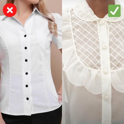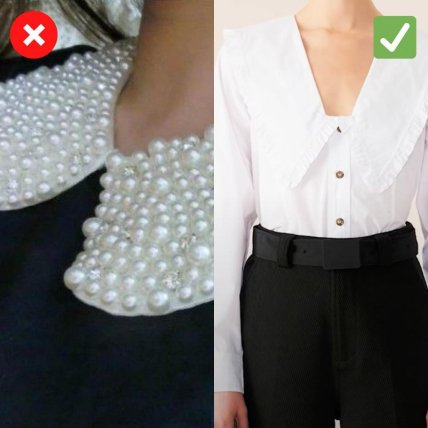 Этим элементом можно разбавить базовую рубашку и сделать акцент на портретную зону. А вот жемчужные воротнички лучше выбросить.
