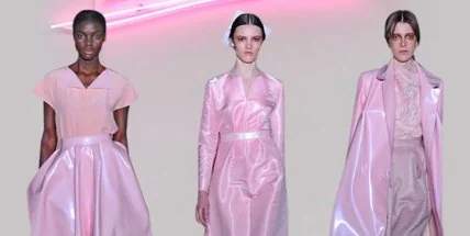 И, наконец, наше любимое — великолепные powerful women в громоздких кожаных пальто и камуфляже или девчонки-недотроги в розовом с ног до головы. Этот цвет жевательной резинки (чупа-чупсов, сахарной ваты — нужное подчеркнуть) станет самой девчачьей тенденцией этой осени. Огромные розовые пальто Carven, пижамы Giles, платьица Moschino Cheap & Chic, пальто Miu Miu и Prada, плащи Roksanda Ilincic, костюмы Simone Rocha — перечислять можно до бесконечности. Как будто бы этот цвет нравится всем вокруг. Так и есть: девушкам этот цвет полагается по праву, да и дизайнеры устали вечно одевать их как мужчин. Обожаем мужской стиль и ни за что от него не откажемся. Просто приятно иногда побыть девушкой в милом розовом платье.
