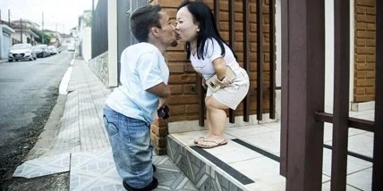 Самая низкорослая пара в мире, где рост и мужчины, и женщины — менее 90 см, доказала всем, что размер не имеет значения, когда речь заходит о любви. Паулу Габриэль да Силва Барруш и Катюсия Хошино из Бразилии страдают карликовостью: его рост — 88,4 см, а ее — 89,4 см. У 30-летнего Пауло редкое генетическое отклонение — диастрофическая карликовость, характеризующаяся системной дисплазией костей. У Катюсии врожденная хондродистрофия, которая не дает ее костям расти. Паулу работает секретарем адвоката, а его возлюбленная — владелица салона красоты.