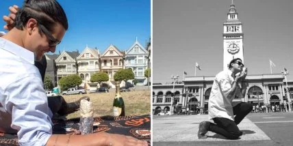 Сикорский со своей любимой мексиканской едой в руке гулял по улицам города и посещал различные места Сан-Франциско. В итоге получилась серия романтических снимков в жанре "лав-стори". Даже пикник с шампанским устроили.