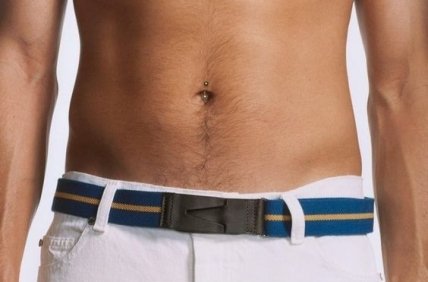 Довольно распространенный вид пирсинга, обусловлено это, прежде всего, тем, что аксессуар в любой момент можно скрыть под одеждой. Кроме этого, мужской пирсинг пупка выбирают подростки, которые хотят испытать новые ощущения. В качестве украшения используют кольца и штанги, но до полного заживления рекомендуется носить "банан".
