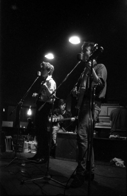 1961 год. Джон Леннон поет и играет на гитаре со Стюартом Сатклиффом и Джорджом Харрисоном в клубе Top Ten Club в Гамбурге.
