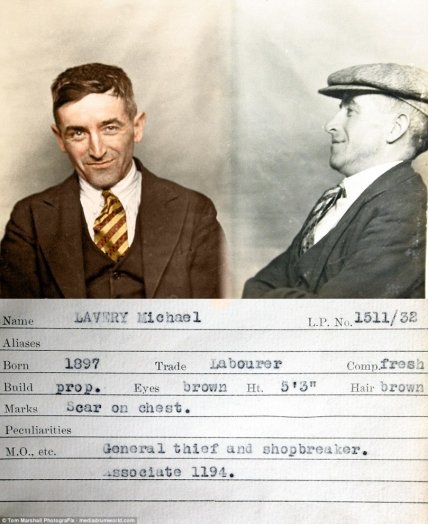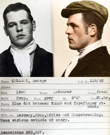 Эта серия снимков преступников из графства Тайн-энд-Уир, занимавшихся своими грязными делишками в 1930-х, была недавно найдена в архивах полиции и раскрашена фотографом Томом Маршаллом.