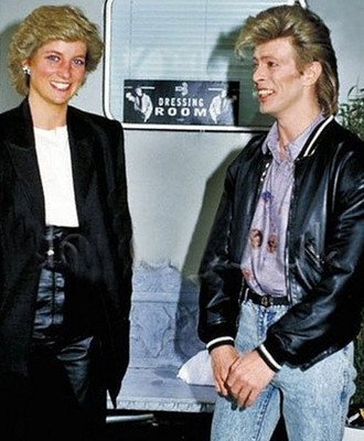 Дэвид Уотерхауз (слева) и принцесса Диана на концерте Дэвида Боуи, 1987 год