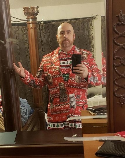 "Моя жена сказала мне, чтобы я выбрал серьёзный костюм для профессиональных рождественских фотографий. Думаю, что я справился"