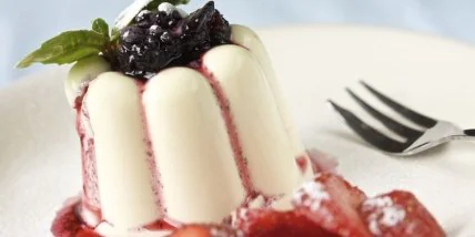 800 миллилитров сливок с ванилью подогрейте на медленном огне. В закипающие сливки добавьте 14 грамм предварительно замоченного желатина и 300 грамм сахара. После того, как все растворится, почти готовую панакоту процеживают через марлю или сито и разливают по формочкам. Осталось сделать соус из свежих ягод с сахарной пудрой или из шоколада, кому как нравится.