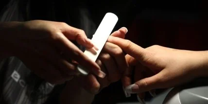 1. Для начала надо подпилить ногти, придав всем ногтям одинаковую длину и абсолютно одинаковую форму. Следите за тем, чтобы движения маникюрной пилочкой были направлены только в одну сторону – от уголка ногтя к его середине, иначе ногти начнут слоиться.