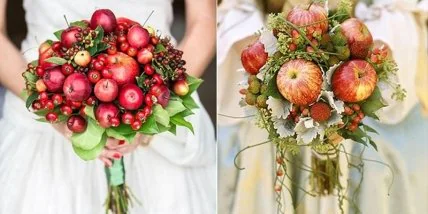 Цветочный букет с фруктами станет не только чудесным подарком для сестры или подруги, но и поможет придать индивидуальности свадебному торжеству.