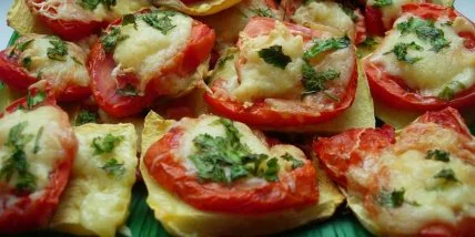 Это блюдо на первый взгляд простое, но и очень вкусное, готовится оно очень легко, вот рецепт запечённых с сыром и помидорами кабачков.