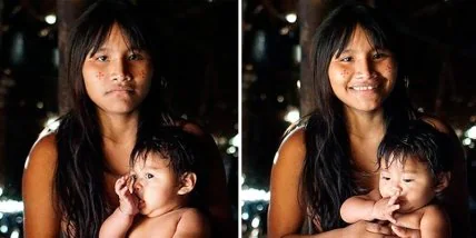 Каждая женщина сфотографирована дважды — до и после комплимента.