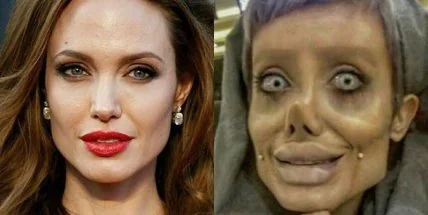 Недавно мировые СМИ написали о 19-летней Сахар Табар из Ирана, которая якобы сделала 50 операций, чтобы стать похожей на своего кумира — Анджелину Джоли. В итоге она стала похожа на персонажа мультфильма Тима Бёртона «Труп невесты». И её инстаграм был заполнен вот такими фотографиями.