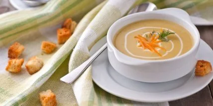 - Если хотите, чтобы суп был совсем кремообразный, слейте часть жидкости.