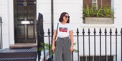 "Клоунские штаны". Футболка с круглым вырезом и обувь тоже не в фаворе.