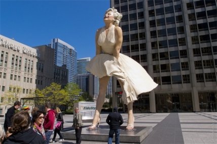 Восьмиметровый и самый популярный в туристической среде памятник актрисе установлен в Чикаго на Мичиган-авеню. Все детали изваяния выполнены очень тщательно и реалистично, начиная с оттенка кожи Мэрилин Монро, её ярко-красной помады, и заканчивая одеждой и даже нижним бельём. А позу актрисы из фильма "Семь дней желания" просто невозможно не узнать.