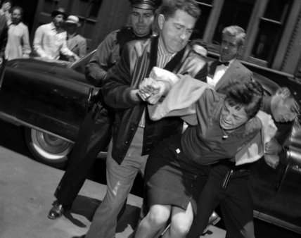 15-летнюю Кармен Мартинез ведут в зал суда. Ради своего бойфренда-мафиози она совершила убийство 17-летнего Рауля Банучи, 1959 год.