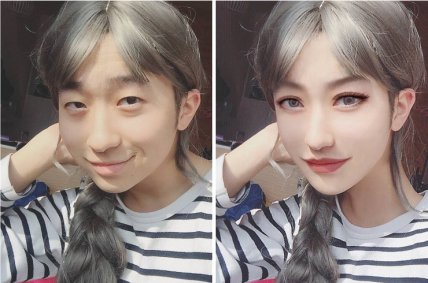 Классика жанра: ровный светлый тон, узкий нос, чуть измененная форма губ с новой "помадой" и, конечно, реснички. Пока некоторые блогеры совершают "тюнинг" в реальности, рядовые азиатки примеряют новый образ через приложение.