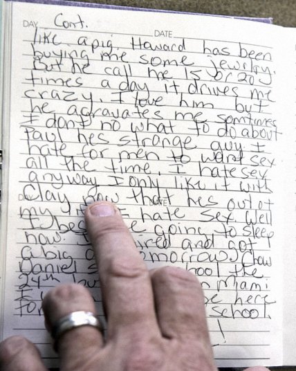 Директор музыкального аукциона Дуг Норвайн читает строчку из дневника Анны Николь 5 апреля 2007 года. Два дневника Смит вошли в список других вещей, выставленных на открытый аукцион. Написанные от руки дневники в начале 90-х показали всем молодую женщину, глубоко влюбленную в нефтяного магната Дж. Говарда Маршалла, но тревожащуюся из-за своей фигуры.