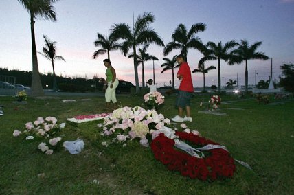 Местные жители у могилы Анны Николь Смит в Нассау на Багамах 2 марта 2007 года. Бывшая модель Playboy и жена миллиардера была похоронена на Багамах после трех недель судебных разбирательств по поводу ее тела.