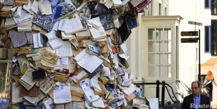 Американская современная художница Нина Качадурян известна несколькими социально-концептуальными проектами. Например, серией снимков-автопортретов, сделанных в туалете самолета и стилизованных под фламандскую живопись. Или проектом под названием "Офисный семафор": установленным на крыше одного из домов Нью-Йорка телескопом, в который можно было подглядывать за жизнью клерков из офисного здания напротив. 1 из арт-проектов Нины Качадурян называется Sorted Books. Если убрать из затеи художественную составляющую, он помогает людям пристроить ненужные книги. Перед тем, как от них избавиться, имеет смысл хотя бы перечитать названия – окажется, что из них можно складывать короткие истории. Блоки из книг можно расставить по квартире – радовать глаз они будут не меньше каких-нибудь ваз.